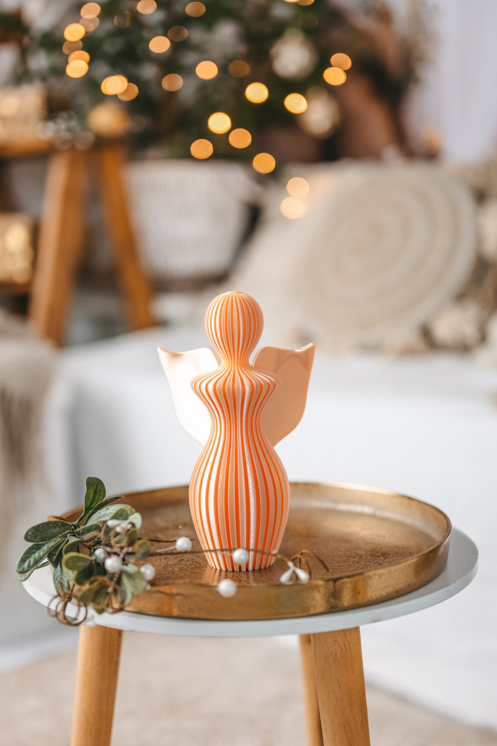 ANDĚL RASO od značky Fiedler Design je elegantní interiérový doplněk, který zaujme svým saténovým povrchem a výraznými vertikálními pruhy. Ty při dopadu světla rozehrávají jemnou hru odlesků a stínů a dodávají váze neustále proměnlivý charakter.