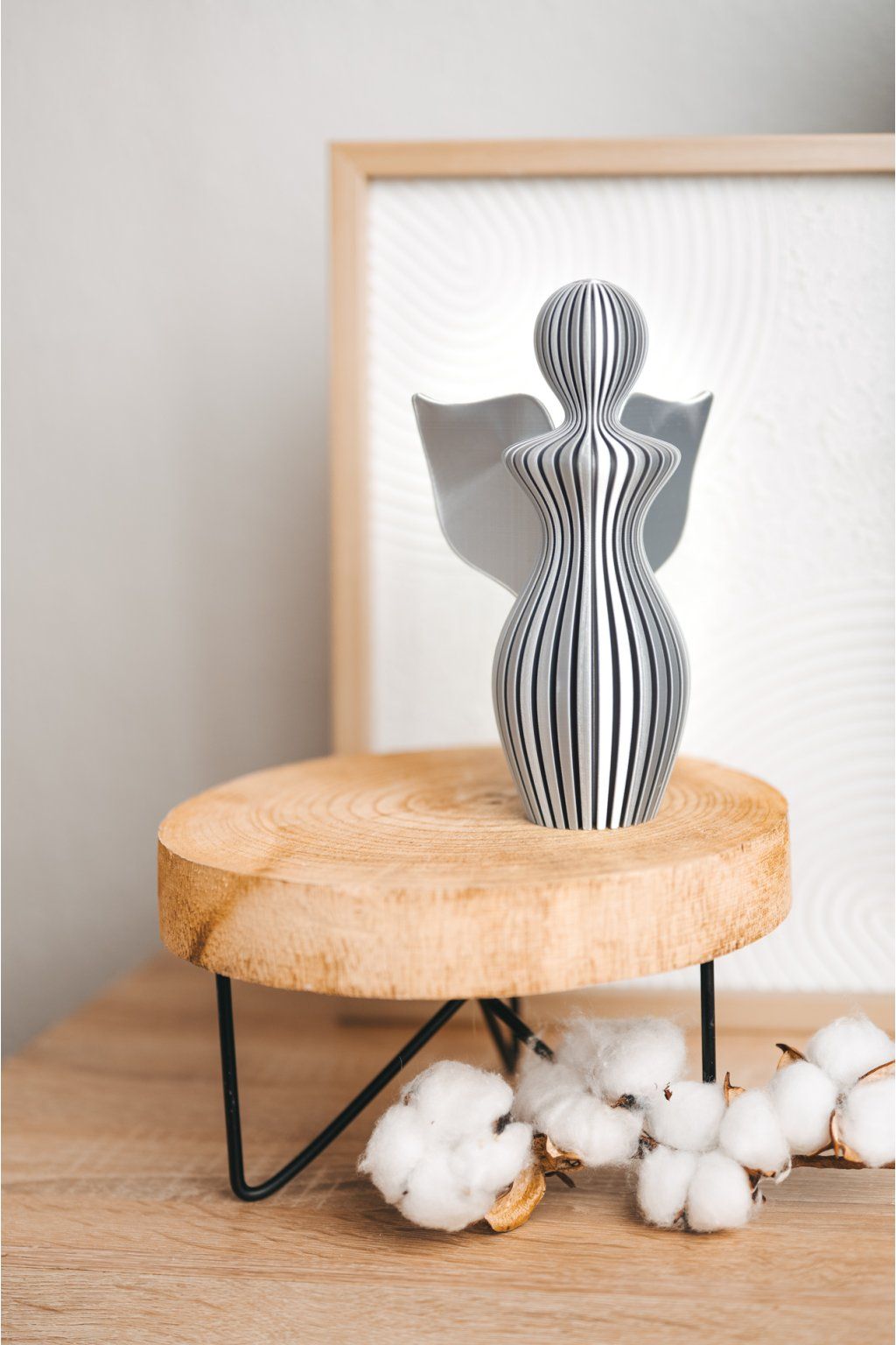 ANDĚL RASO od značky Fiedler Design je elegantní interiérový doplněk, který zaujme svým saténovým povrchem a výraznými vertikálními pruhy. Ty při dopadu světla rozehrávají jemnou hru odlesků a stínů a dodávají neustále proměnlivý charakter.