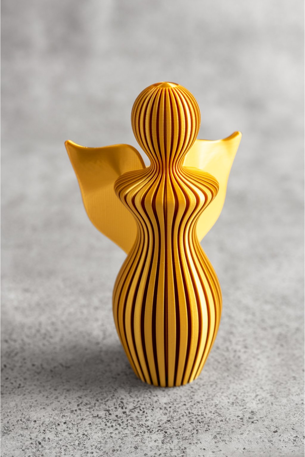 ANDĚL RASO od značky Fiedler Design je elegantní interiérový doplněk, který zaujme svým saténovým povrchem a výraznými vertikálními pruhy. Ty při dopadu světla rozehrávají jemnou hru odlesků a stínů a dodávají váze neustále proměnlivý charakter.