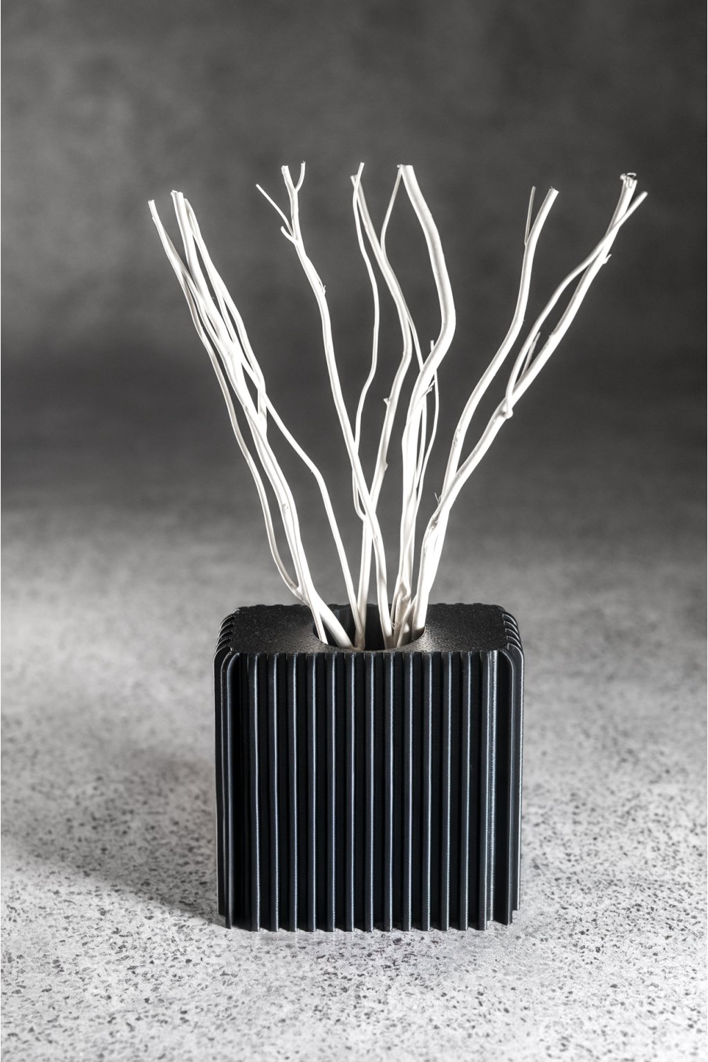 DIFUZÉR CUBO od značky Fiedler Design je elegantní interiérový doplněk, který zaujme svým saténovým povrchem a výraznými vertikálními pruhy. Ty při dopadu světla rozehrávají jemnou hru odlesků a stínů a dodávají váze neustále proměnlivý charakter.