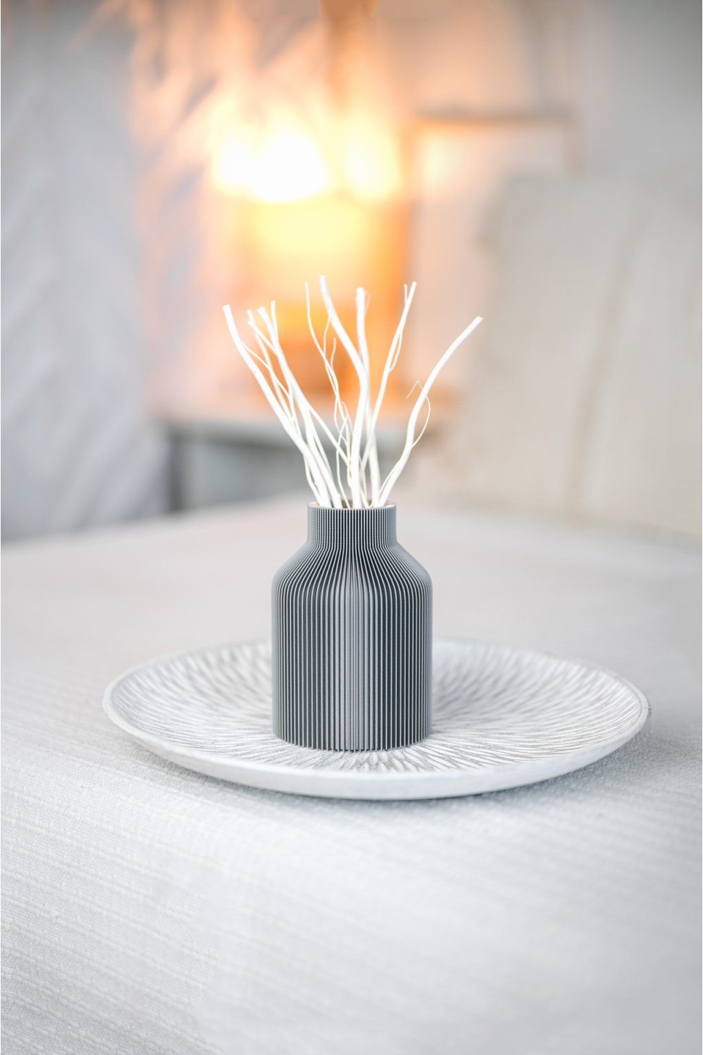 DIFUZÉR PELOSO od značky Fiedler Design je elegantní interiérový doplněk, který zaujme svým saténovým povrchem a výraznými vertikálními pruhy. Ty při dopadu světla rozehrávají jemnou hru odlesků a stínů a dodávají váze neustále proměnlivý charakter.