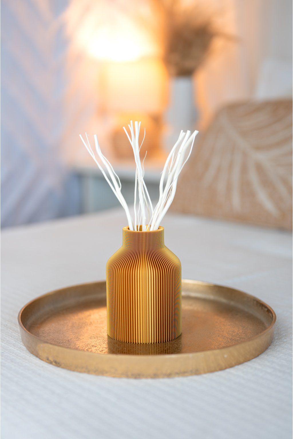 DIFUZÉR PELOSO od značky Fiedler Design je elegantní interiérový doplněk, který zaujme svým saténovým povrchem a výraznými vertikálními pruhy. Ty při dopadu světla rozehrávají jemnou hru odlesků a stínů a dodávají váze neustále proměnlivý charakter.