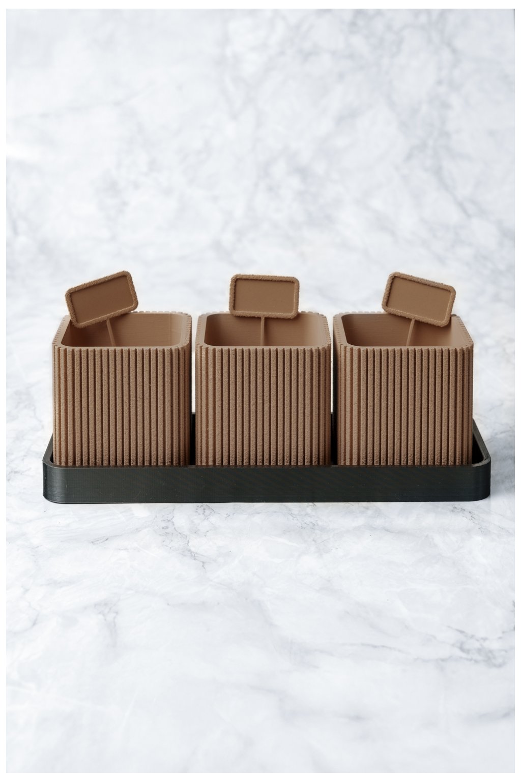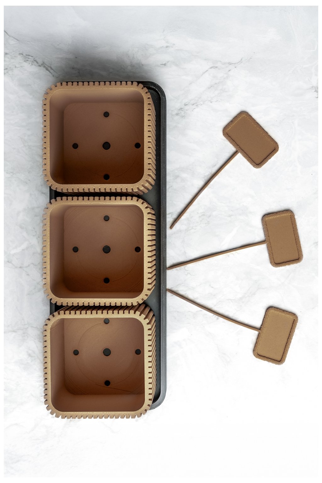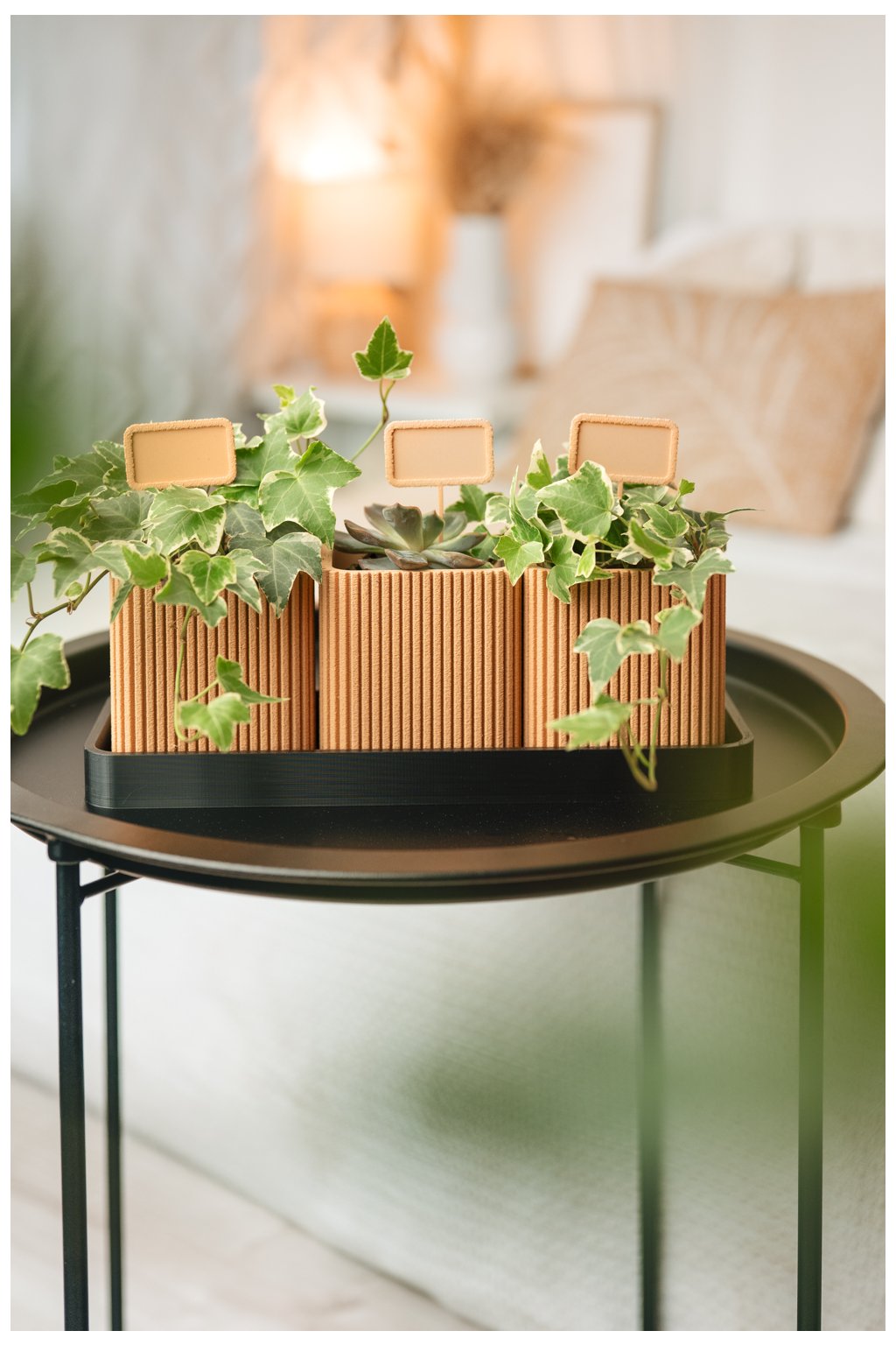 Stylové trio květináčů Erba od značky Fiedler je elegantní interiérový doplněk, který zaujme svou kamennou či dřevěnou texturou a výraznými vertikálními pruhy. Trio menších květináčů se zapichovátky přináší ideální prostor pro pěstování čerstvých bylinek přímo u vás doma.