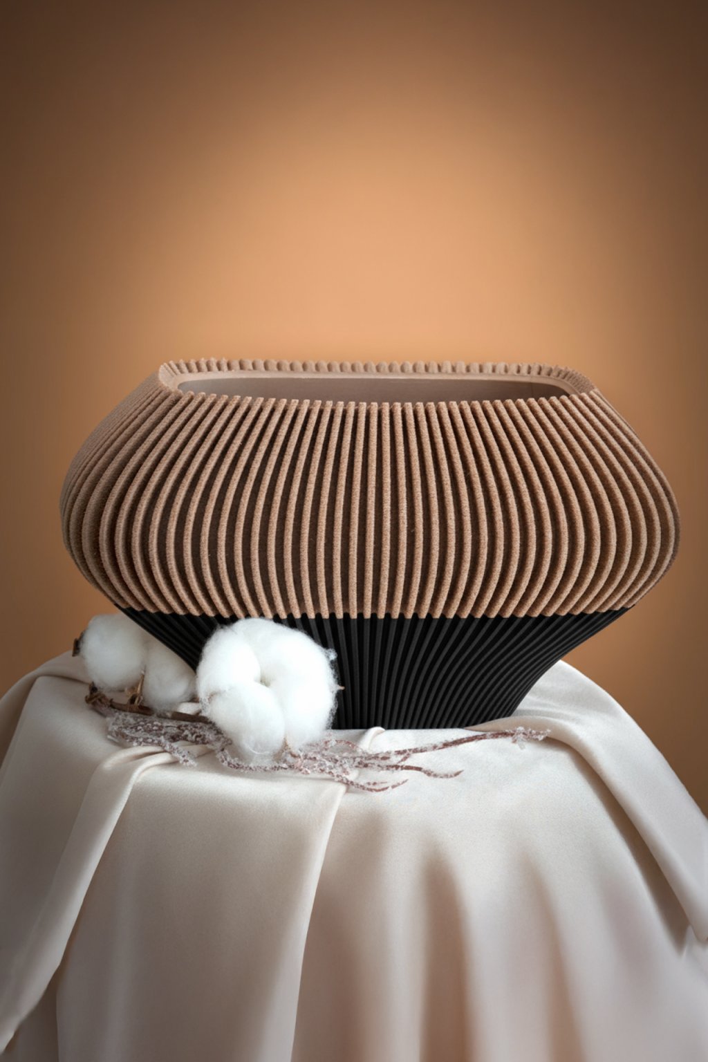 KVĚTINÁČ CONO od značky Fiedler Design je elegantní interiérový doplněk spojující jemnou strukturu dřeva se saténovým povrchem. Tento kontrast materiálů dodává váze přirozený a sofistikovaný vzhled, který působí harmonicky v jakémkoli interiéru.
