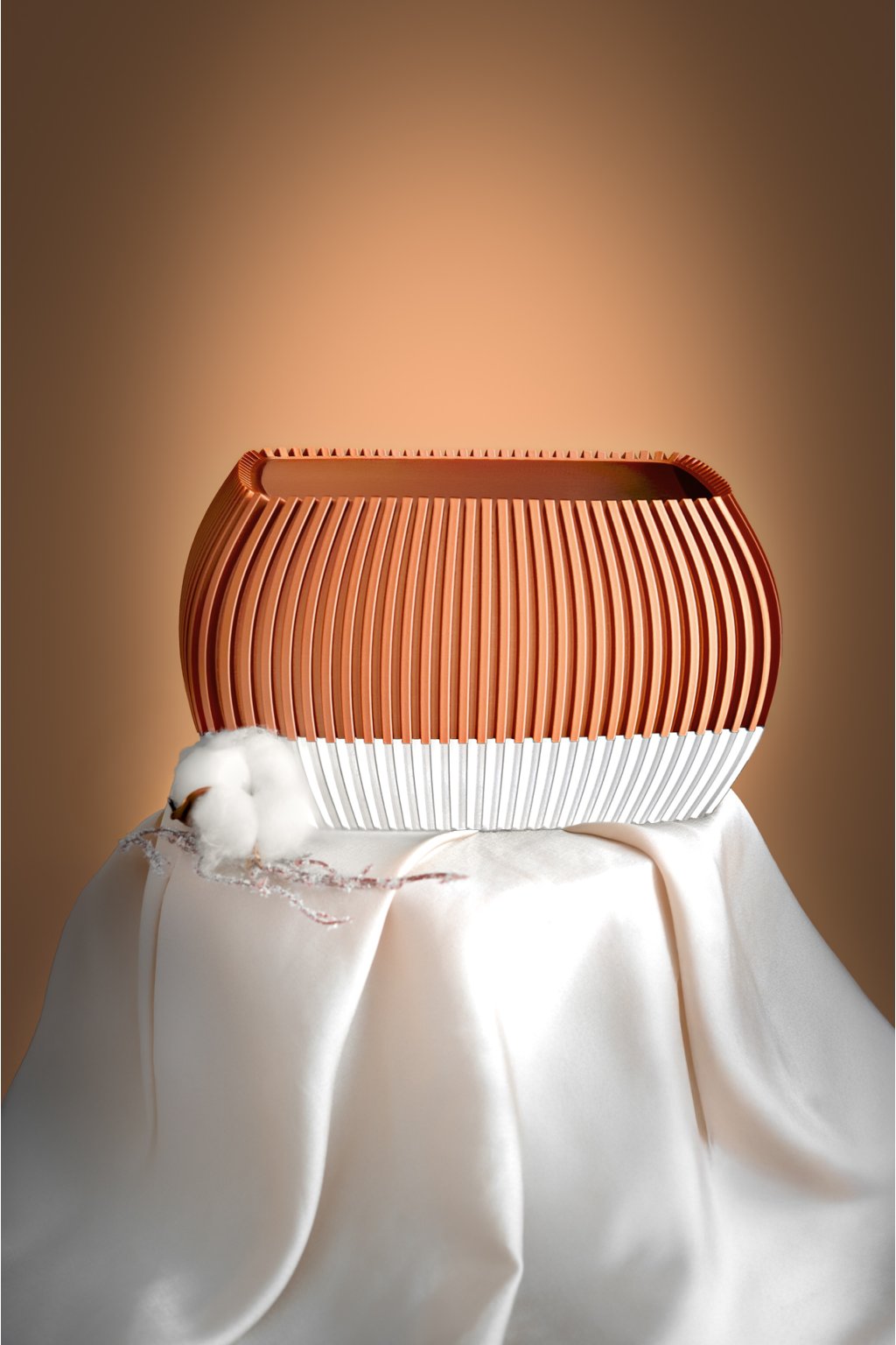KVĚTINÁČ TANATO od značky Fiedler Design je elegantní interiérový doplněk, který zaujme svým saténovým povrchem a výraznými vertikálními pruhy. Ty při dopadu světla rozehrávají jemnou hru odlesků a stínů a dodávají váze neustále proměnlivý charakter.