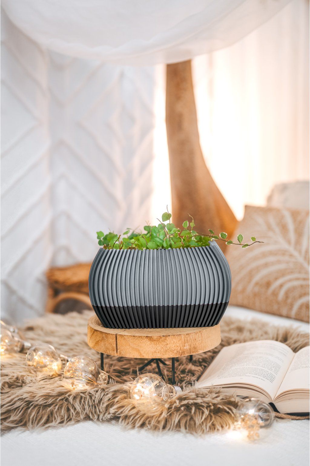KVĚTINÁČ TANATO od značky Fiedler Design je elegantní interiérový doplněk, který zaujme svým saténovým povrchem a výraznými vertikálními pruhy. Ty při dopadu světla rozehrávají jemnou hru odlesků a stínů a dodávají váze neustále proměnlivý charakter.