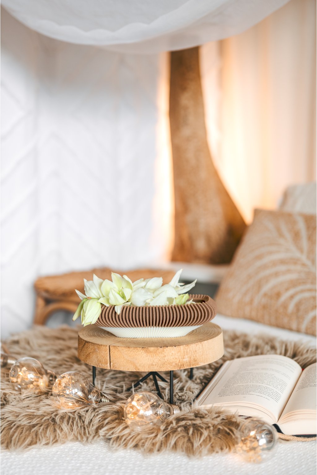 SET CONO od značky Fiedler zahrnuje tři elegantní interiérové doplňky – misku, květináč a vázu, které spolu tvoří harmonický celek. Kombinace jemné struktury dřeva a saténového povrchu dodává celé kolekci přirozený, harmonický a moderní vzhled.