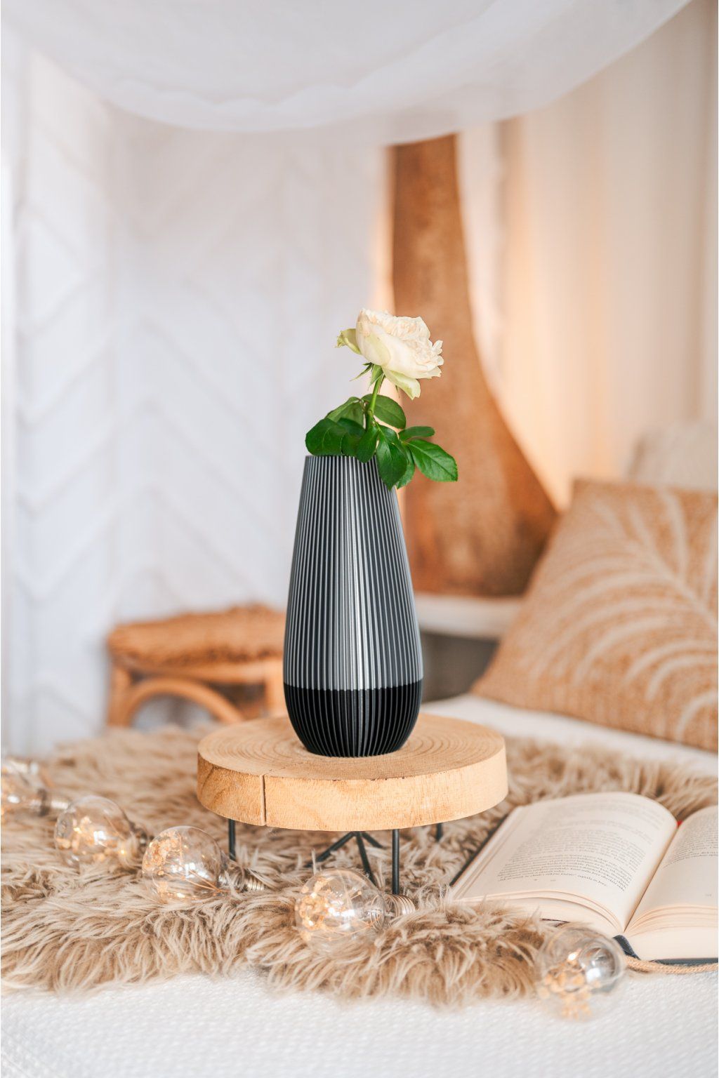 Každý kus je originál vyrobený technologií 3D tisku, a proto se může jemně lišit odstínem nebo drobnými detaily od zobrazených fotografií. Barva se může mírně měnit podle světelných podmínek při focení i konkrétní šarže použitého materiálu. Výrobek chraňte před přímým slunečním zářením a uchovávejte mimo dosah dětí.