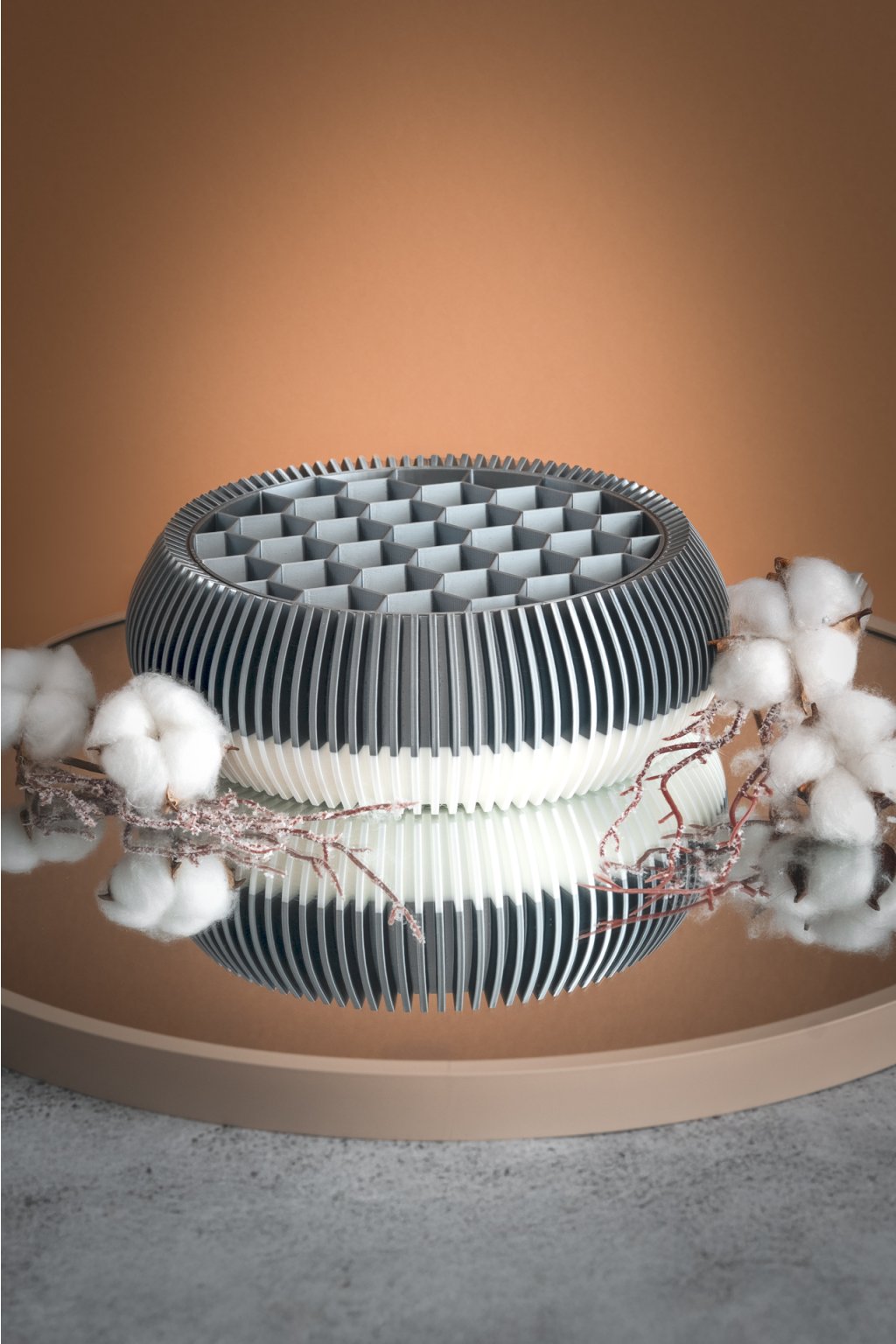 Každý kus je originál vyrobený technologií 3D tisku, a proto se může jemně lišit odstínem nebo drobnými detaily od zobrazených fotografií. Barva se může mírně měnit podle světelných podmínek při focení i konkrétní šarže použitého materiálu. Výrobek chraňte před přímým slunečním zářením a uchovávejte mimo dosah dětí.