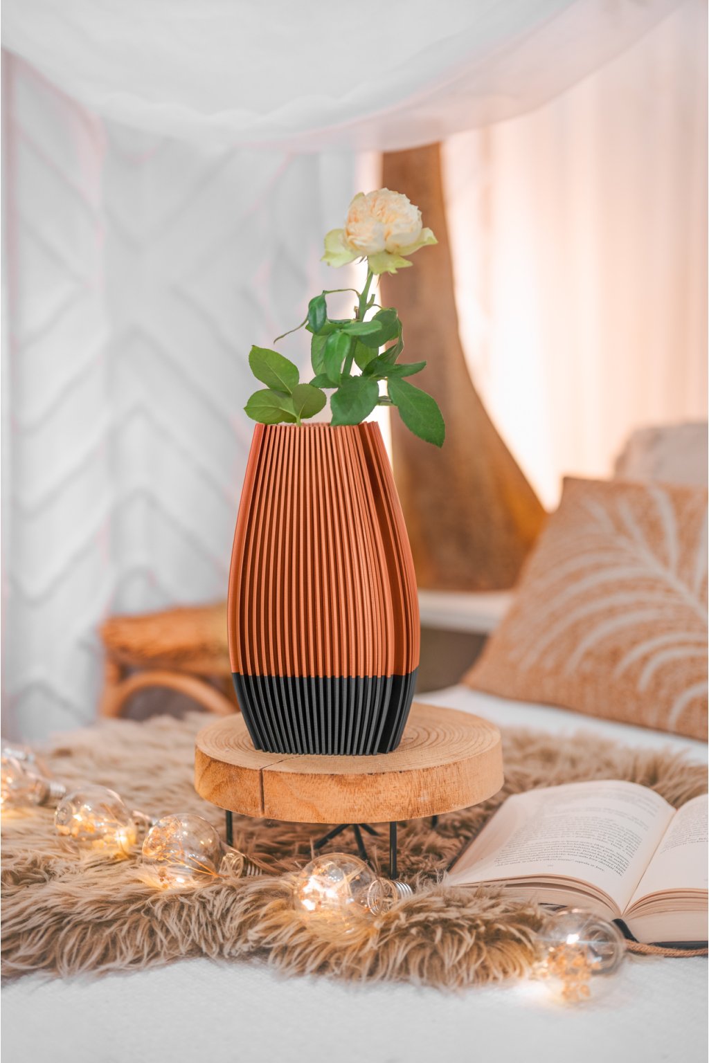 Každý kus je originál vyrobený technologií 3D tisku, a proto se může jemně lišit odstínem nebo drobnými detaily od zobrazených fotografií. Barva se může mírně měnit podle světelných podmínek při focení i konkrétní šarže použitého materiálu. Výrobek chraňte před přímým slunečním zářením a uchovávejte mimo dosah dětí.