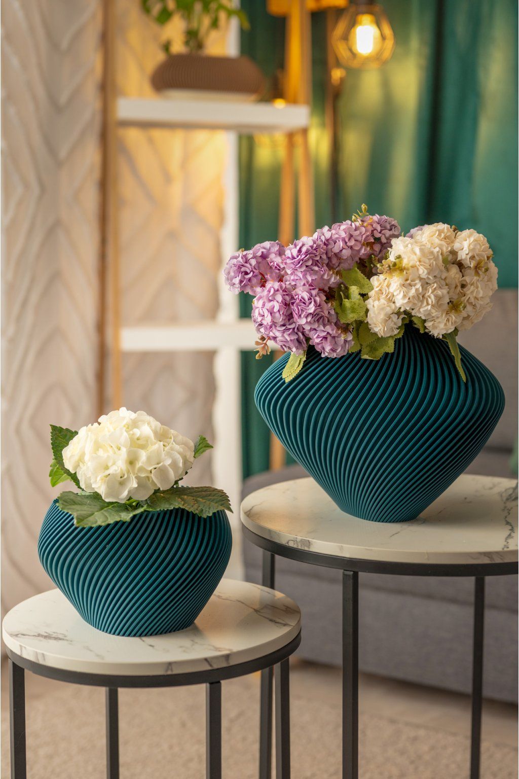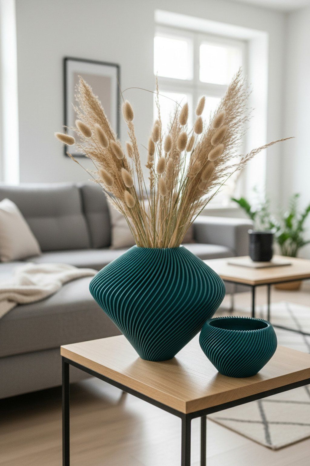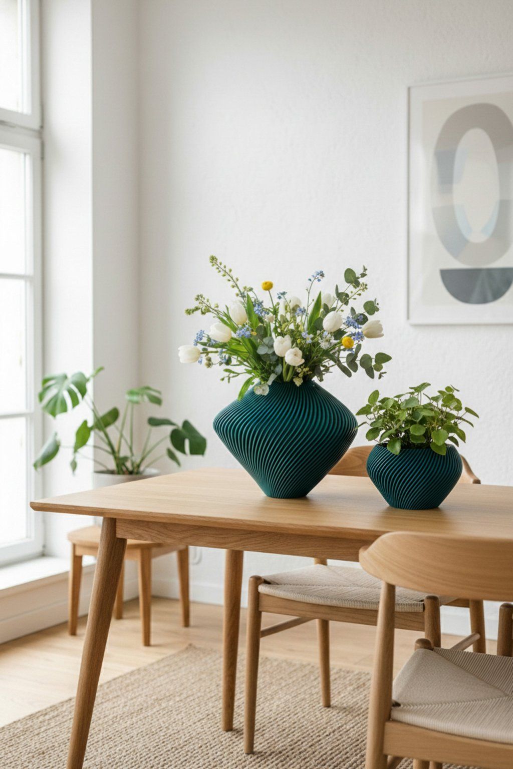 - Designová kompozice: Váza a květináč společně vytvářejí harmonický celek, který v interiéru působí jako promyšlený dekorativní prvek.