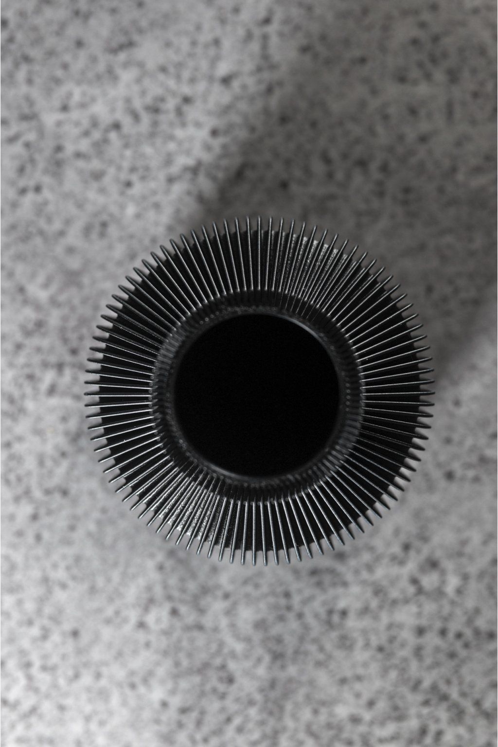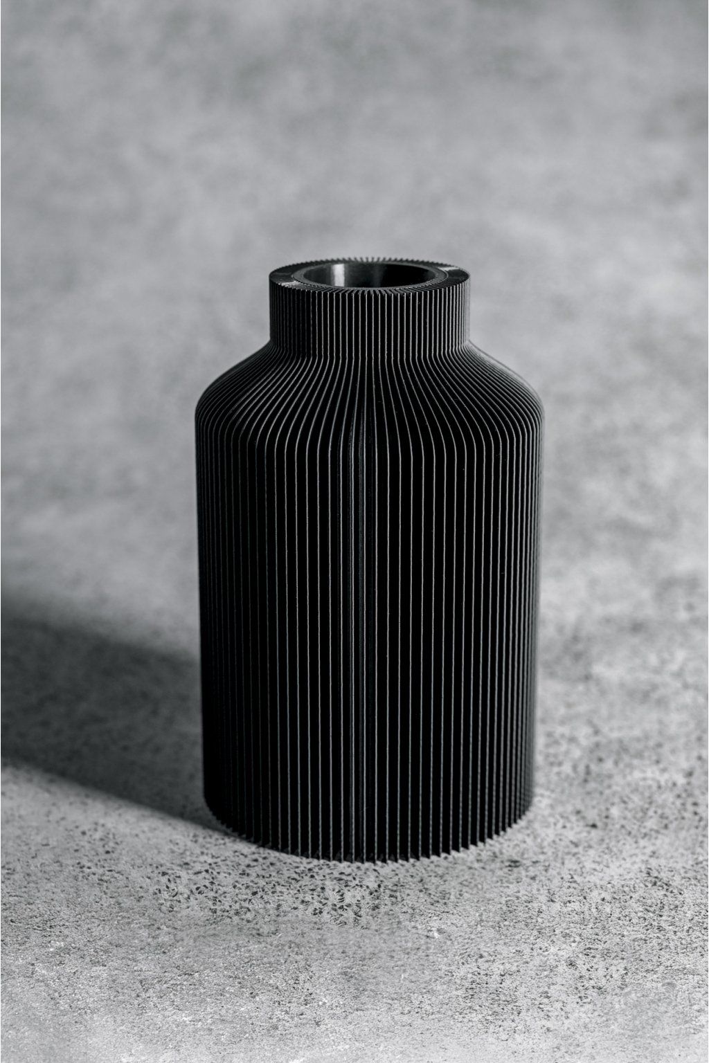 VÁZA BANDANA od značky Fiedler Design je elegantní interiérový doplněk, který zaujme svým saténovým povrchem a výraznými vertikálními pruhy. Ty při dopadu světla rozehrávají jemnou hru odlesků a stínů a dodávají váze neustále proměnlivý charakter.