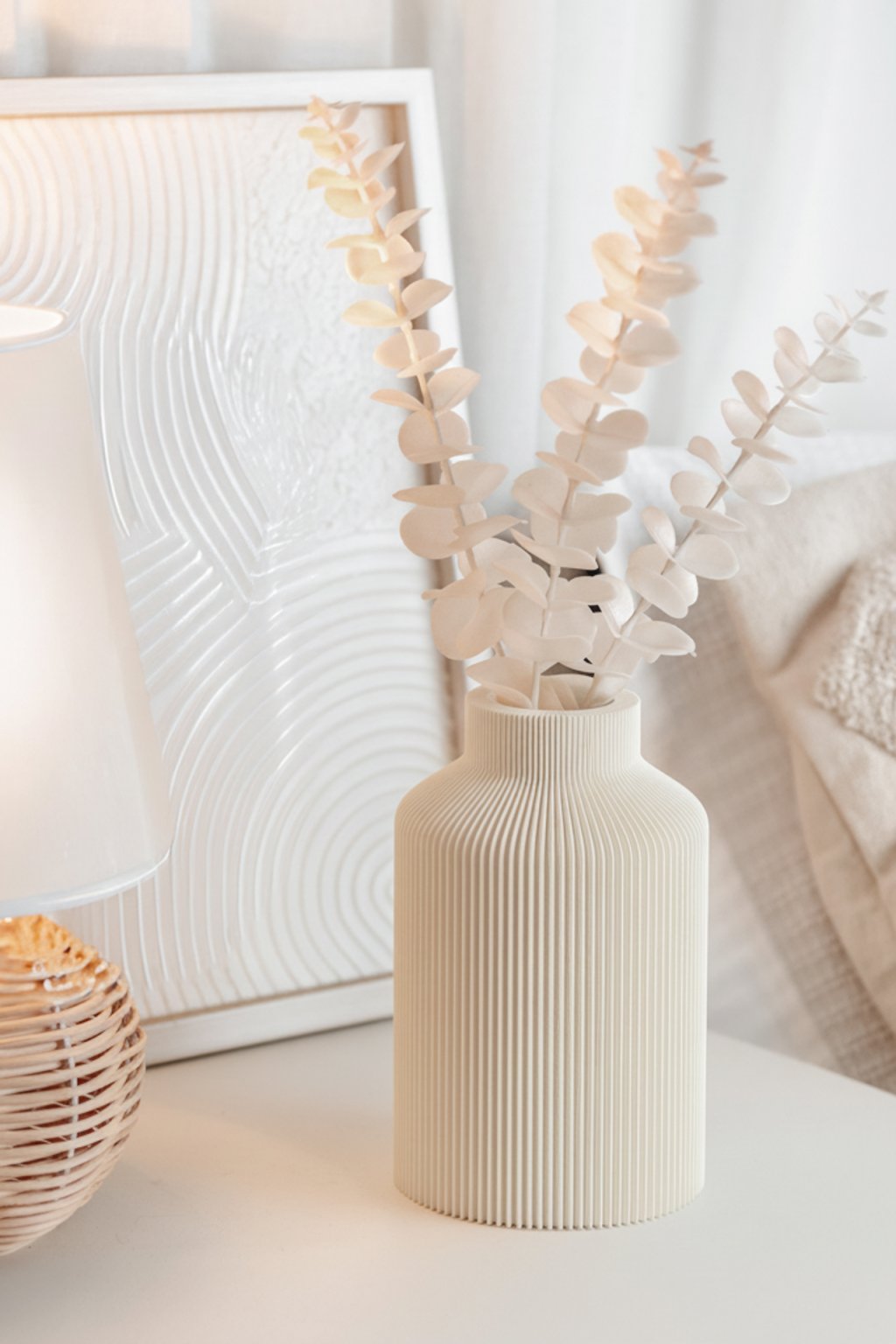 VÁZA BANDANA od značky Fiedler Design je elegantní interiérový doplněk, který zaujme svým saténovým povrchem a výraznými vertikálními pruhy. Ty při dopadu světla rozehrávají jemnou hru odlesků a stínů a dodávají váze neustále proměnlivý charakter.