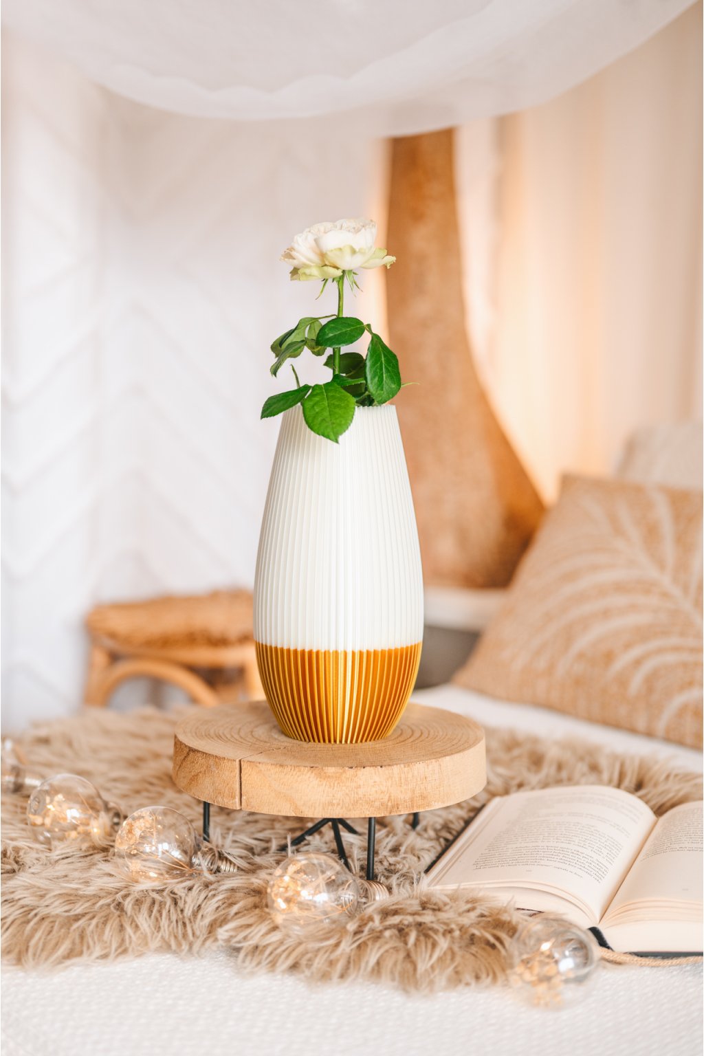 Každý kus je originál vyrobený technologií 3D tisku, a proto se může jemně lišit odstínem nebo drobnými detaily od zobrazených fotografií. Barva se může mírně měnit podle světelných podmínek při focení i konkrétní šarže použitého materiálu. Výrobek chraňte před přímým slunečním zářením a uchovávejte mimo dosah dětí.