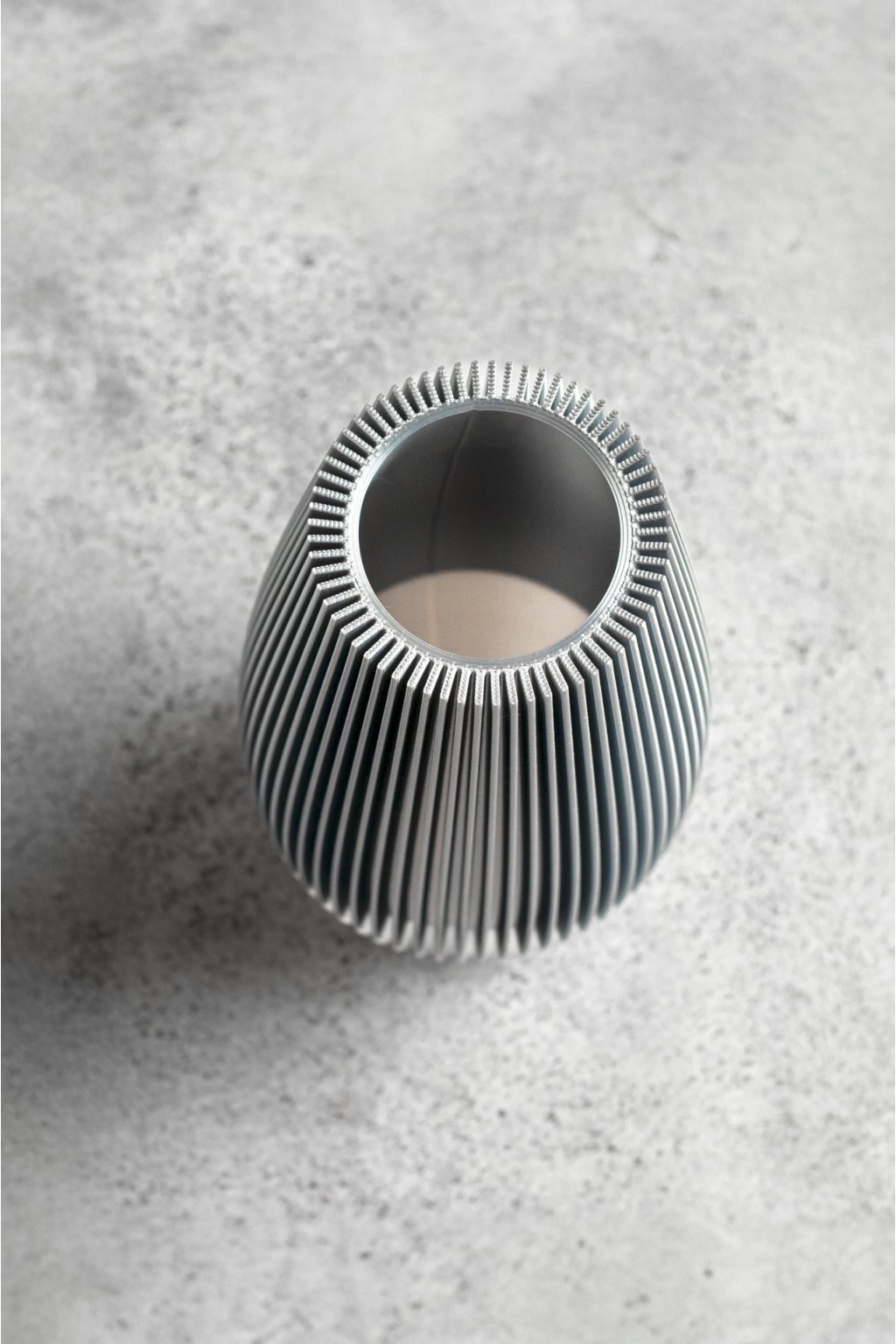 VÁZA SPESSO od značky Fiedler Design je elegantní interiérový doplněk, který zaujme svým saténovým povrchem a výraznými vertikálními pruhy. Ty při dopadu světla rozehrávají jemnou hru odlesků a stínů a dodávají váze neustále proměnlivý charakter.
