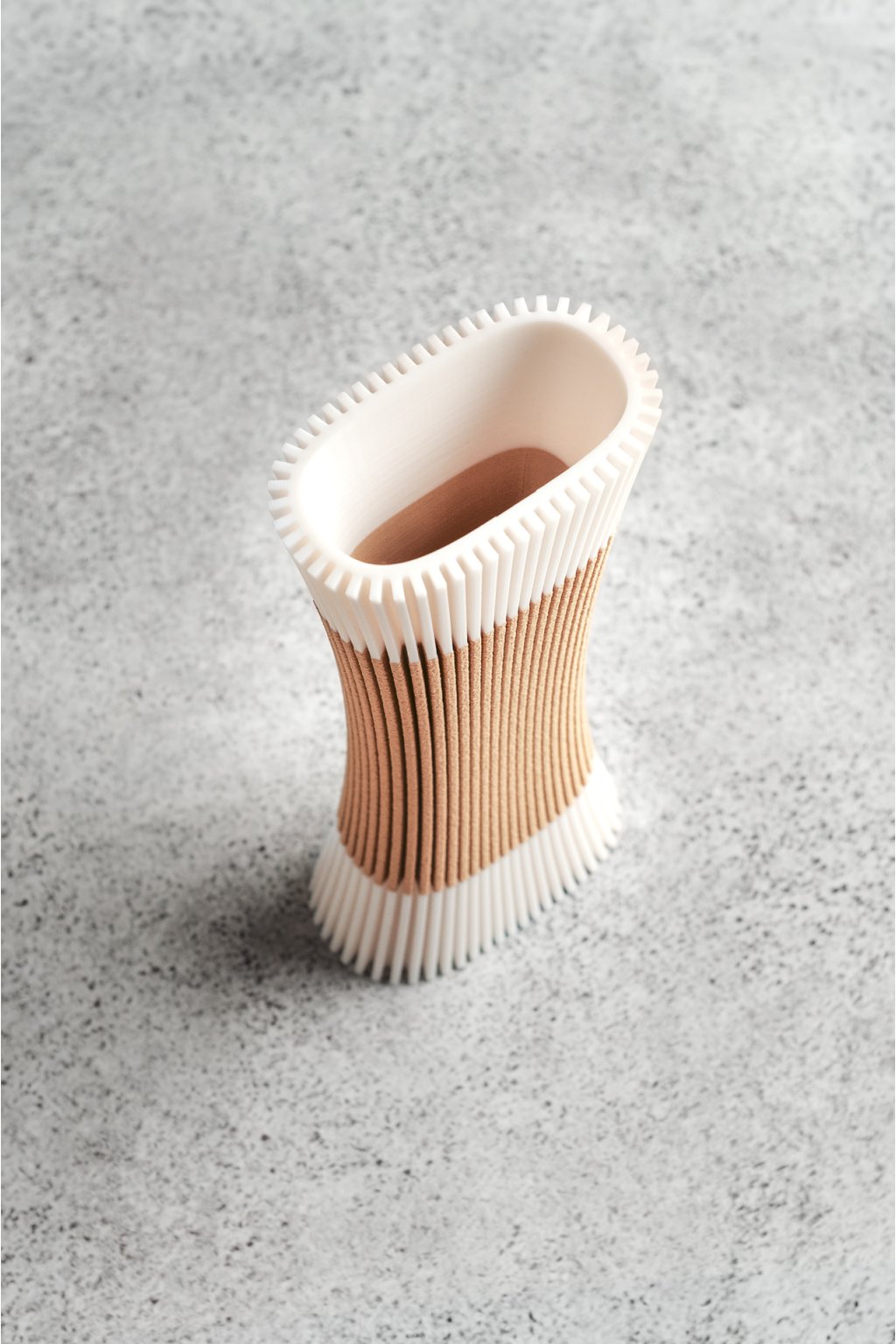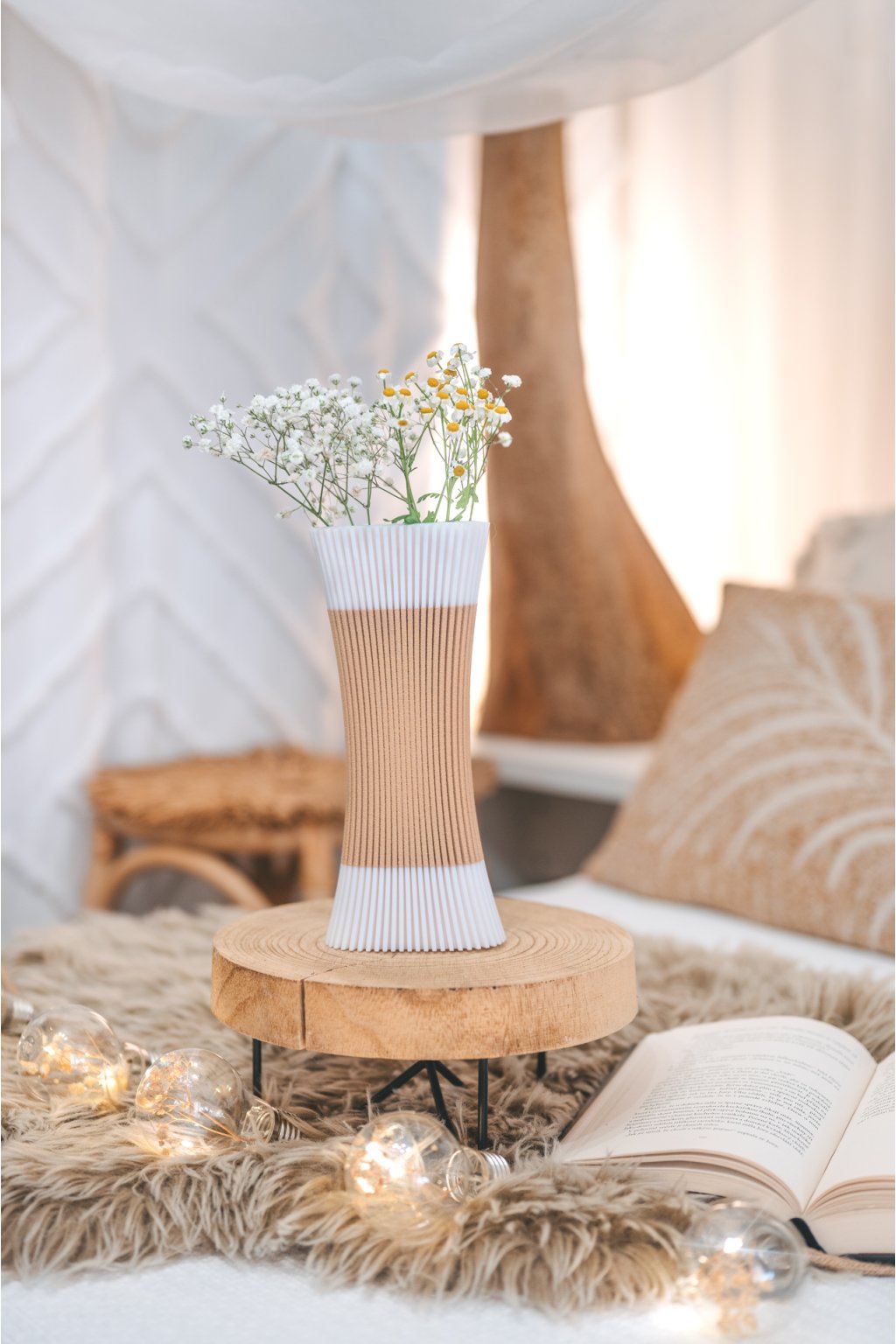 VÁZA STRETTO od značky Fiedler Design je elegantní interiérový doplněk spojující jemnou strukturu dřeva se saténovým povrchem. Tento kontrast materiálů dodává váze přirozený a sofistikovaný vzhled, který působí harmonicky v jakémkoli interiéru.