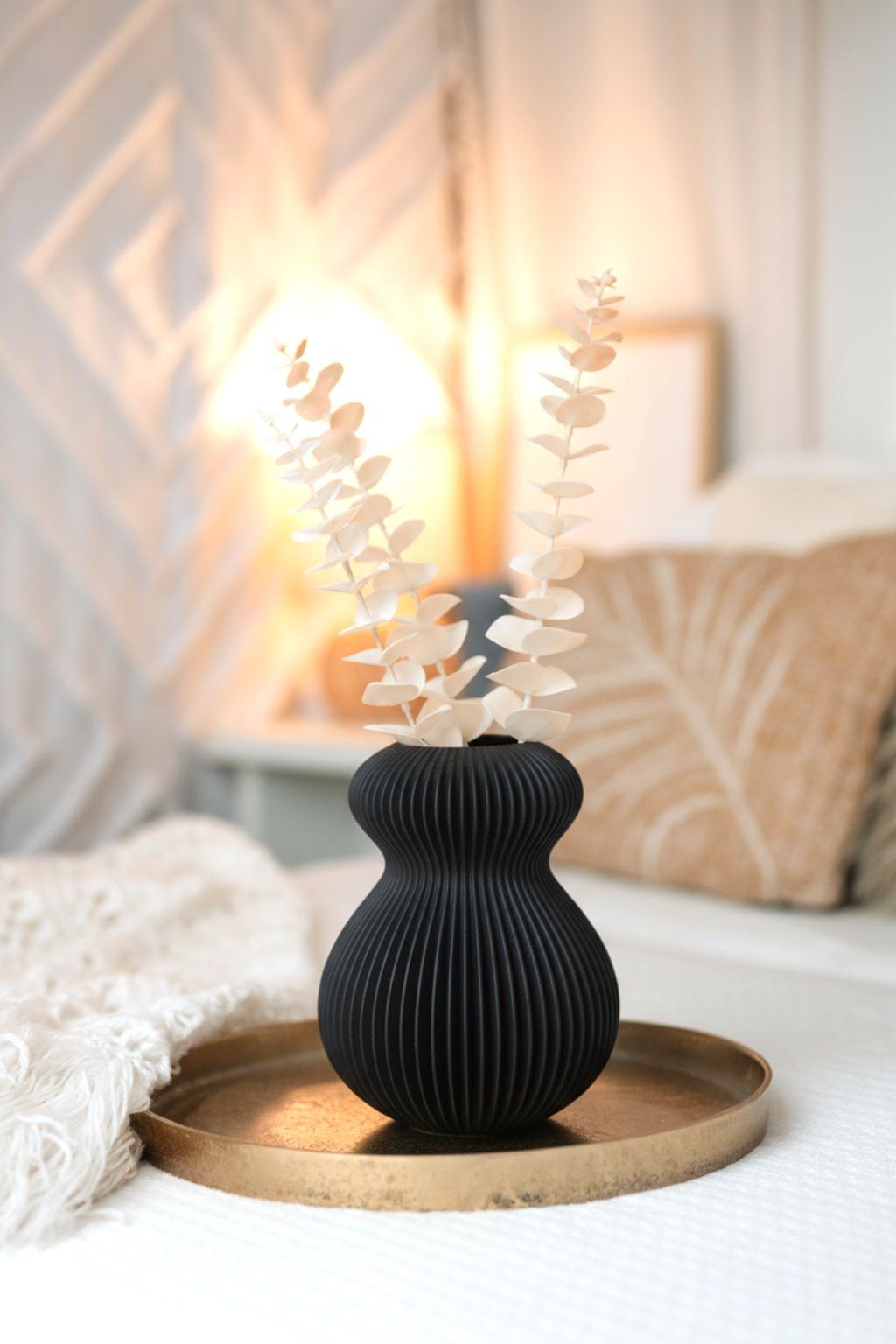 VÁZA ZUCCA od značky Fiedler Design je elegantní interiérový doplněk, který zaujme svým saténovým povrchem a výraznými vertikálními pruhy. Ty při dopadu světla rozehrávají jemnou hru odlesků a stínů a dodávají váze neustále proměnlivý charakter.