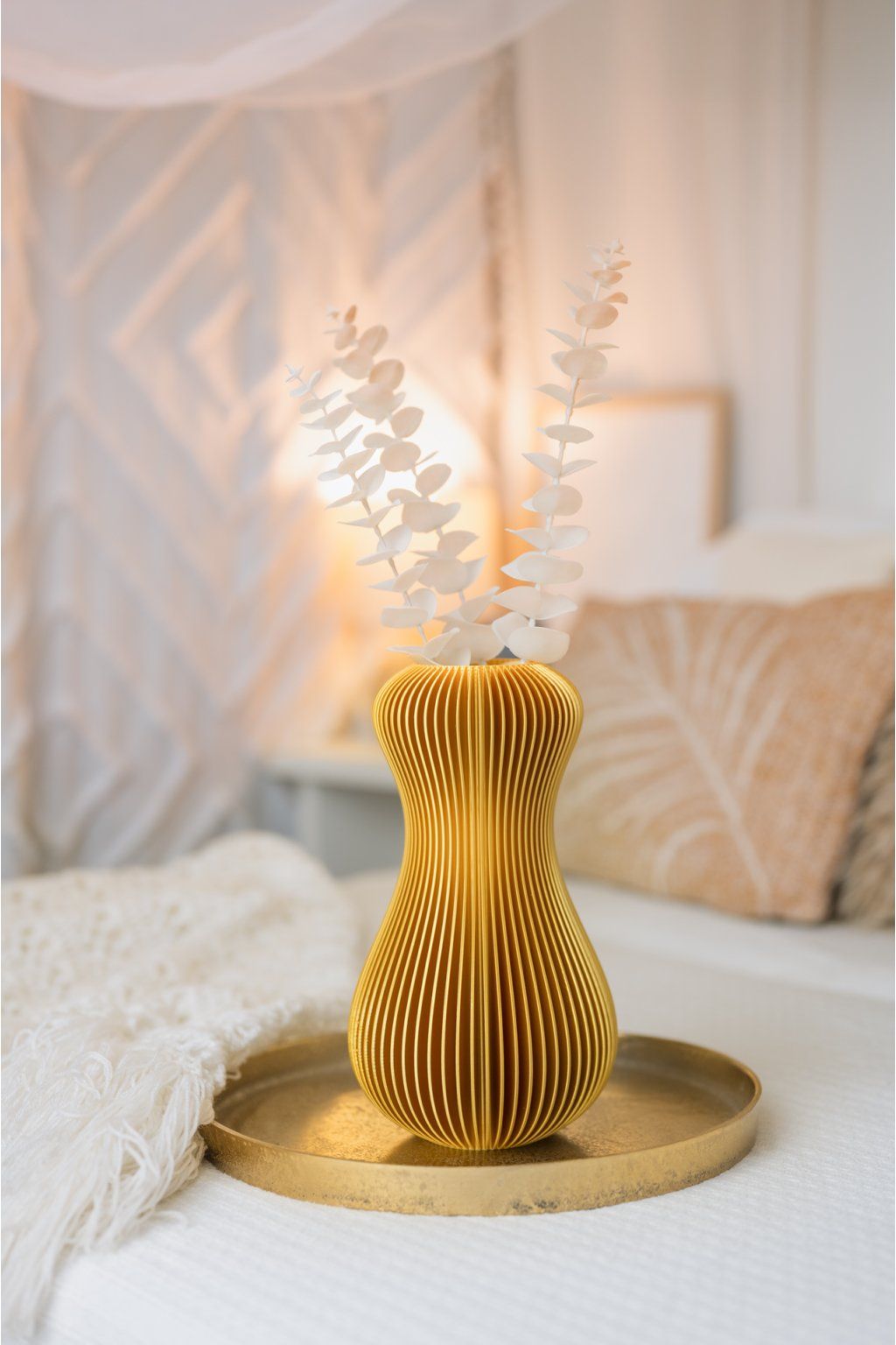 VÁZA ZUCCA od značky Fiedler Design je elegantní interiérový doplněk, který zaujme svým saténovým povrchem a výraznými vertikálními pruhy. Ty při dopadu světla rozehrávají jemnou hru odlesků a stínů a dodávají váze neustále proměnlivý charakter.